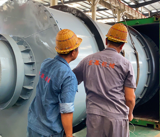 我公司生產(chǎn)的固、危廢回轉(zhuǎn)窯日處理工業(yè)廢棄物規(guī)格型號根據(jù)有十一個產(chǎn)品,筒體直徑X長度在?2.2×9m-?4.5×16m之間,轉(zhuǎn)速0.05-2r/min,配套主電機(jī)功率18.5KW-55KW,煅燒溫度850-1200度,能實(shí)現(xiàn)20-100t/d固、危廢無害化、減量化、資源化焚燒。